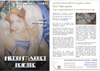 A l’occasion du soixantième anniversaire du décès de Henri Marret survenu le 25 juillet 1964, diverses manifestations, expositions ou conférence se sont tenues à Fourqueux et à Saint Germain en Laye à l’automne 2024.
