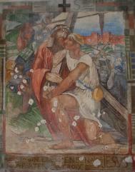 Peint par Marret en 1930, quatre ans après la mort de son fils Jean en 1926, ce chemin de croix porte le signe de sa douleur. Les visages de Marie et de Jésus y sont plus que jamais marqués par la souffrance. |