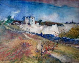 L’aquarelle de Saint-Gilles-Croix-de-Vie (Vendée) , plus tardive permet de voir l’évolution de l’artiste. Progressivement, les paysages supplantent les scènes de genre et la présence humaine au fil des ans devient suggérée par une silhouette voir absente comme dans l’aquarelle ci-contre.