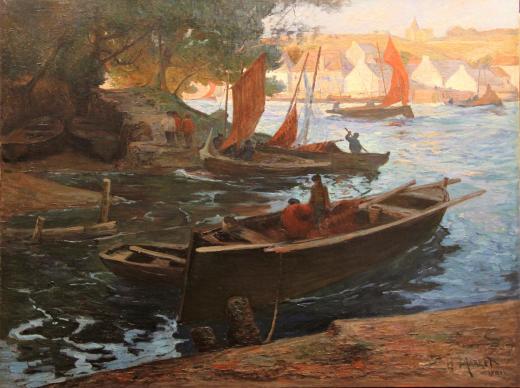 La Rentrée des Barques - 1901 Huile sur toile Signée H.Marret, datée 1901 coin bas droit (146 x 114 cm)
